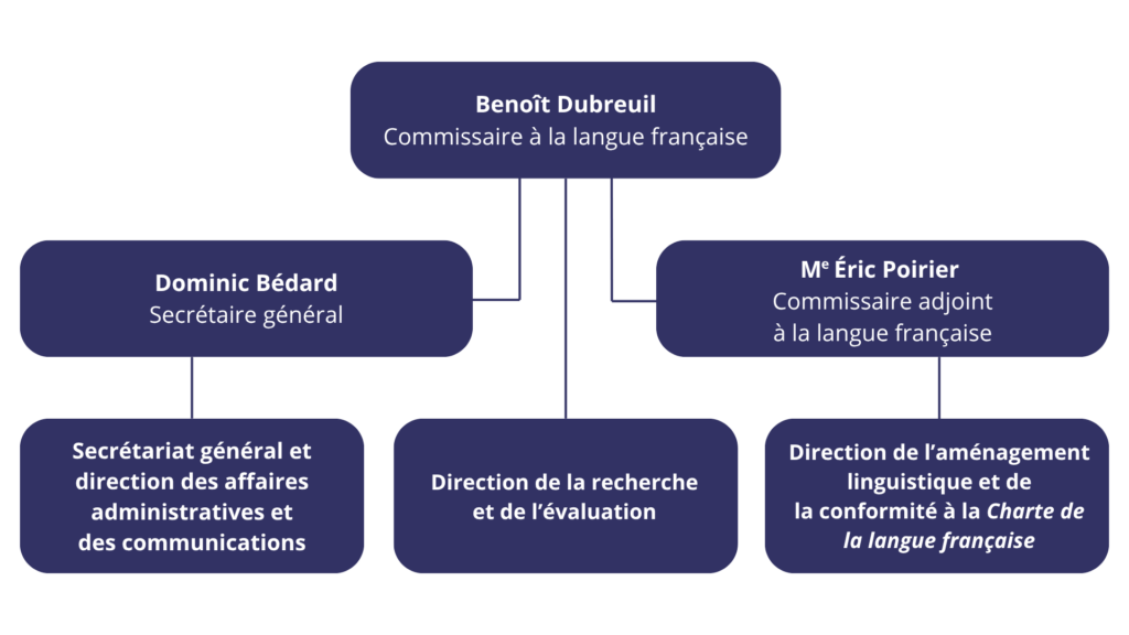 Voici l’organigramme du Commissaire à la langue française.